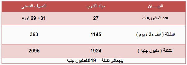 مشروعات مياه الشرب والصرف الصحي المنفذة بمحافظة الشرقية